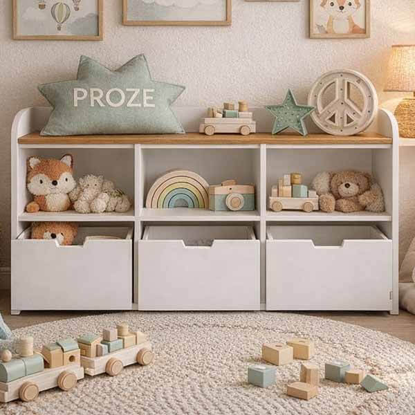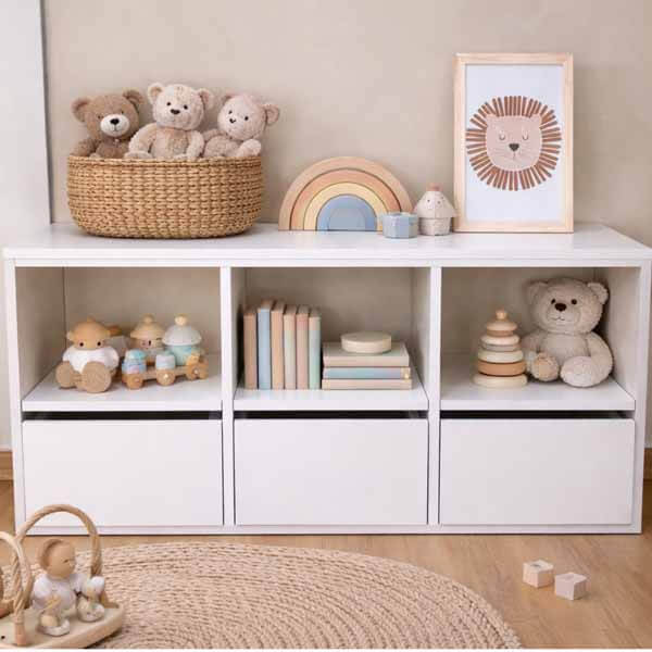 Juguetero Montessori 3 huecos y 3 cajones 120mts