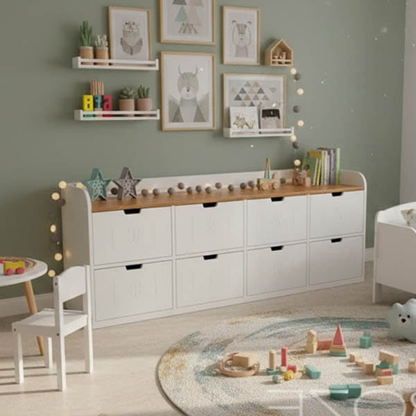 Juguetero Montessori 7 huecos 4 cajones laqueado
