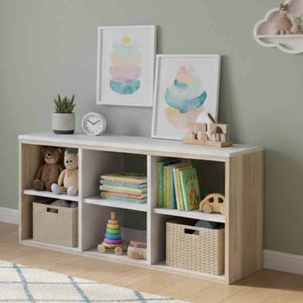 Juguetero Montessori Laqueado 3 huecos y 3 cajones 120mts