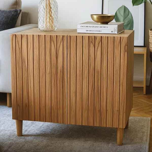 Mesa de Luz Acanalada Genova Laqueada 2 cajones