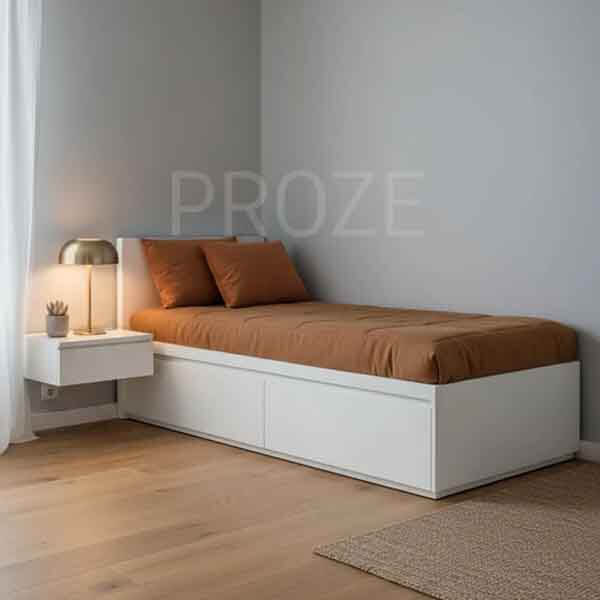 Imagina despertar en una cama acogedora y levantarte con facilidad para comenzar tu día. Nuestra cama de 1 plaza cuenta con cajones integrados, lo que significa que puedes aprovechar al máximo cada centímetro de espacio en tu habitación. Almacena tus sábanas, mantas o cualquier otro objeto personal en los cajones, manteniendo tu habitación ordenada y libre de desorden.