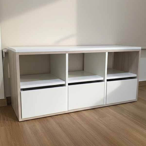 Mueble organizador 3 huecos 3 cajones. Fabricado en MDF blanco combinado con MDF Helsinski.