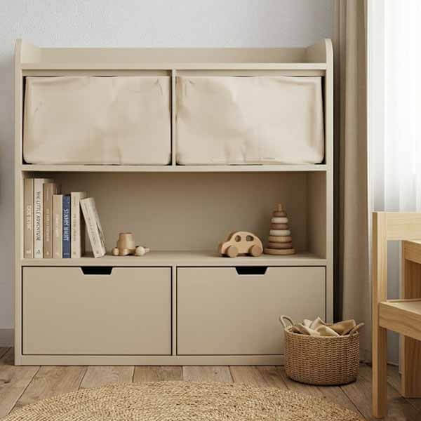 Juguetero Montessori 3 huecos y 2 cajones Laqueado