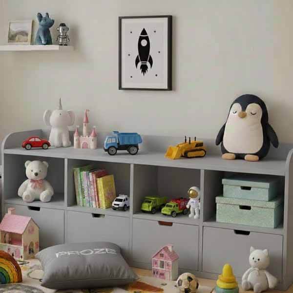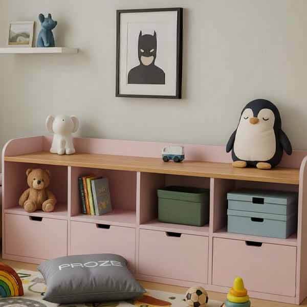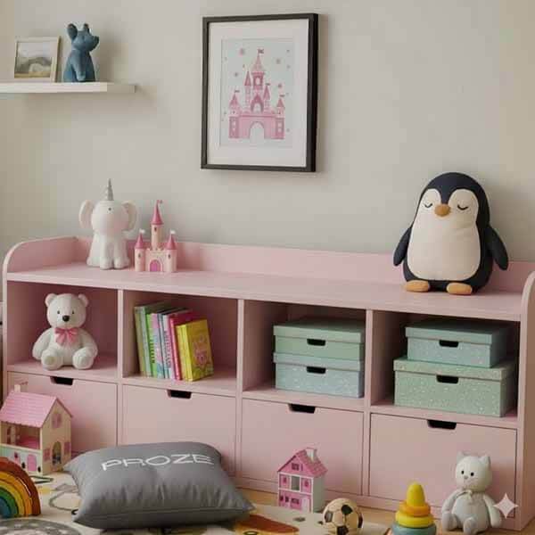 Juguetero Montessori 4 huecos y 4 cajones Laqueado Colores