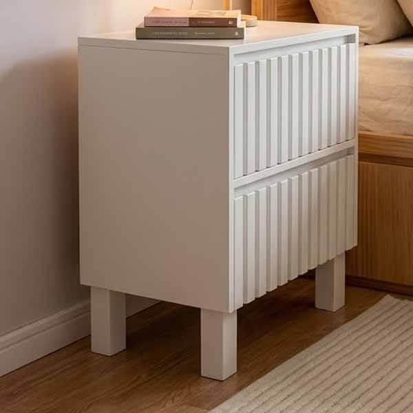Mesa de luz varillada fabricada en madera laqueada, ideal para dormitorios de estilo moderno o minimalista. Su diseño limpio con detalle de varillas verticales aporta calidez y personalidad al espacio. Perfecta como mesa de noche con espacio de guardado funcional. Terminación laqueada de alta calidad en color blanco, hielo o a elección. Producto de diseño argentino, hecho a medida y con envíos a todo el país. Disponible en distintos tonos de madera