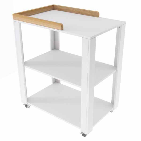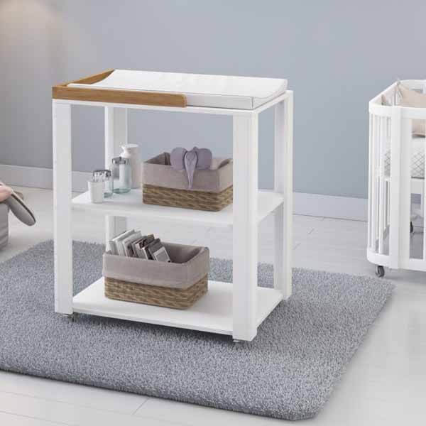 Este práctico mueble te va a permitir cambiar a tu bebé de manera cómoda y segura.Posee dos estantes para que puedas tener todo lo que necesitas a mano y además cuatro ruedas para que puedas trasladarlo dos con frenos.