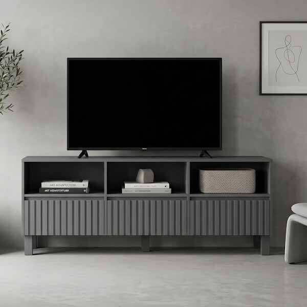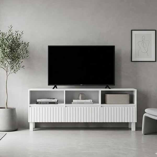 Fabricado en madera laqueada. 3 cajones con correderas telescopicas y metalicas para una mejor y mayor apertura – 3 huecos funcionales. Medidas: 144 x 32 x 60 alto.