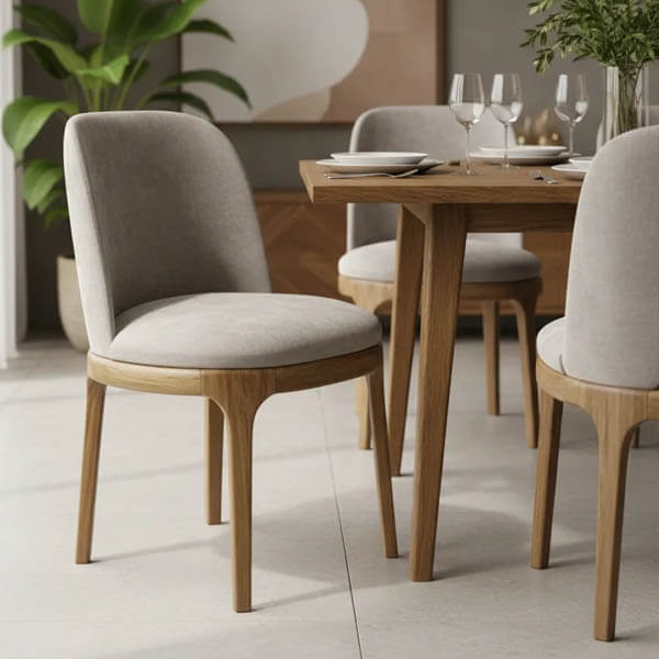 Fabricada en Madera de Paraiso Macizo disponible en lustre natural (color paraíso), tabaco (tinte oscuro) y ébano (negro) Tapizadas en lino de diversos colores con proceso antimancha colores a a eleccion. Respaldo con diseño curvo.